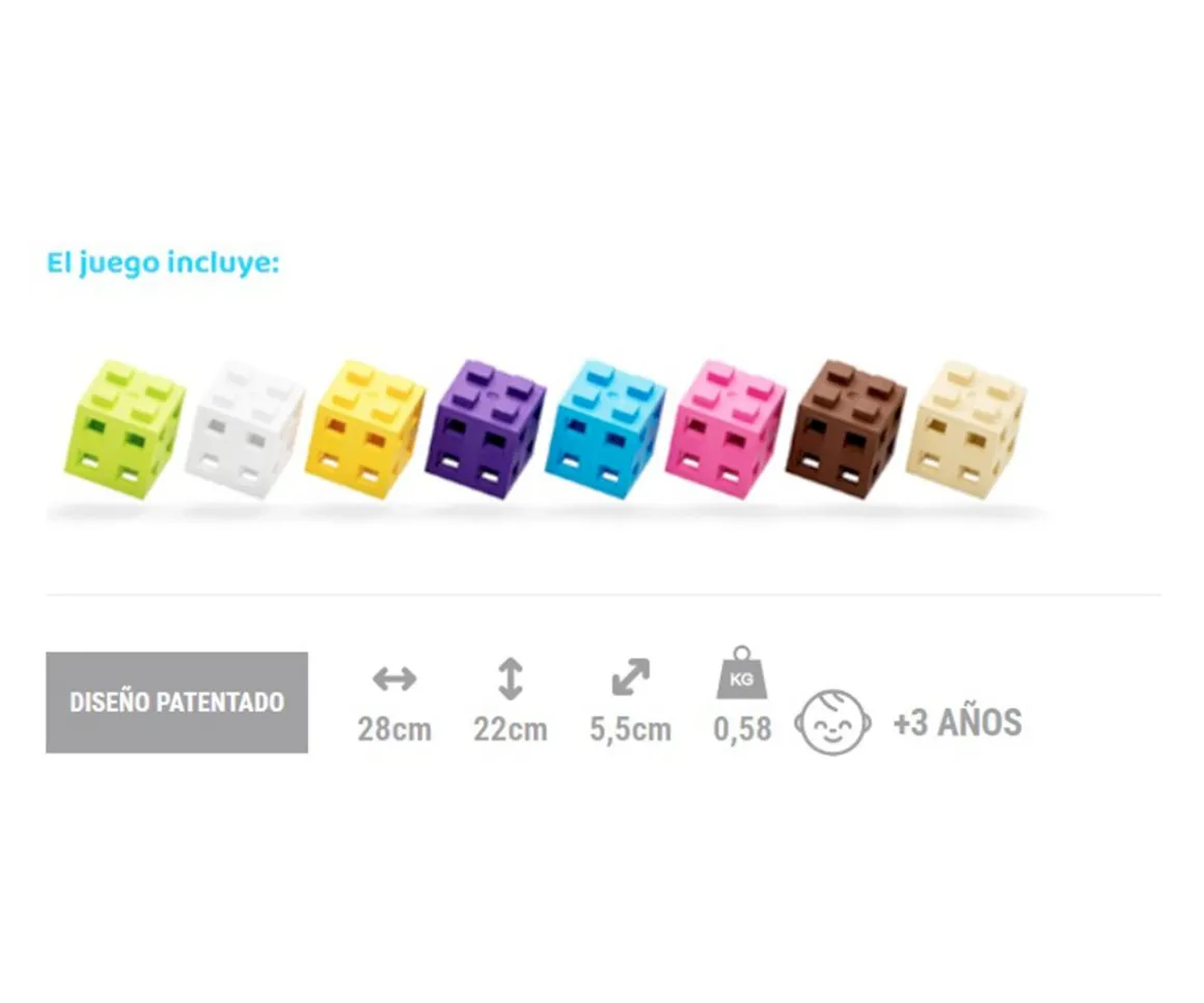 Cada set incluye cubos de hasta 8 colores: verde, blanco, amarillo, lila, azul, rosa, marrón, beige