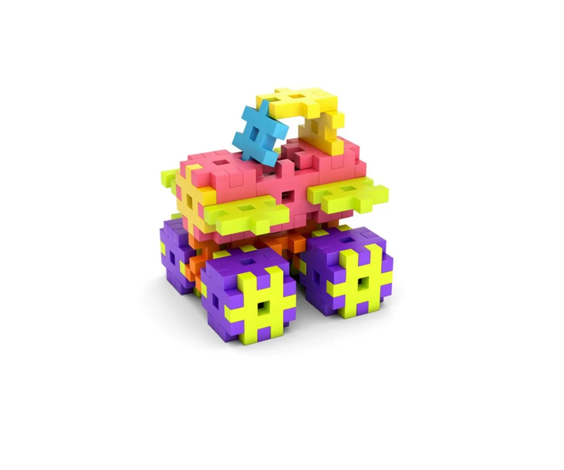 Maxi son piezas de 4.2 cm en colores vivos o pastel ideales para usar a partir de 12 meses, perfectas para realizar construcciones en 3D.