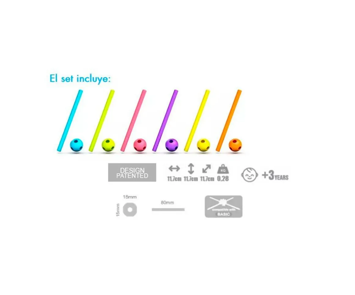 Stik son varillas flexibles que se unen entre si usando bolitas con agujeros para crear estructuras 3D.