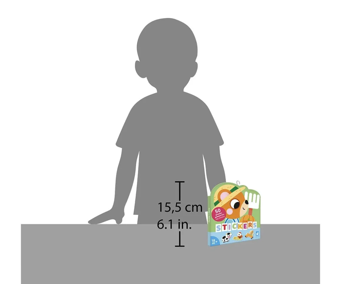 El tamaño de las pegatinas ha sido diseñado para las manos de los peques, que podrán cogerlas y pegarlas con facilidad. Explora todo a los animalitos y sus actividades en la granja.