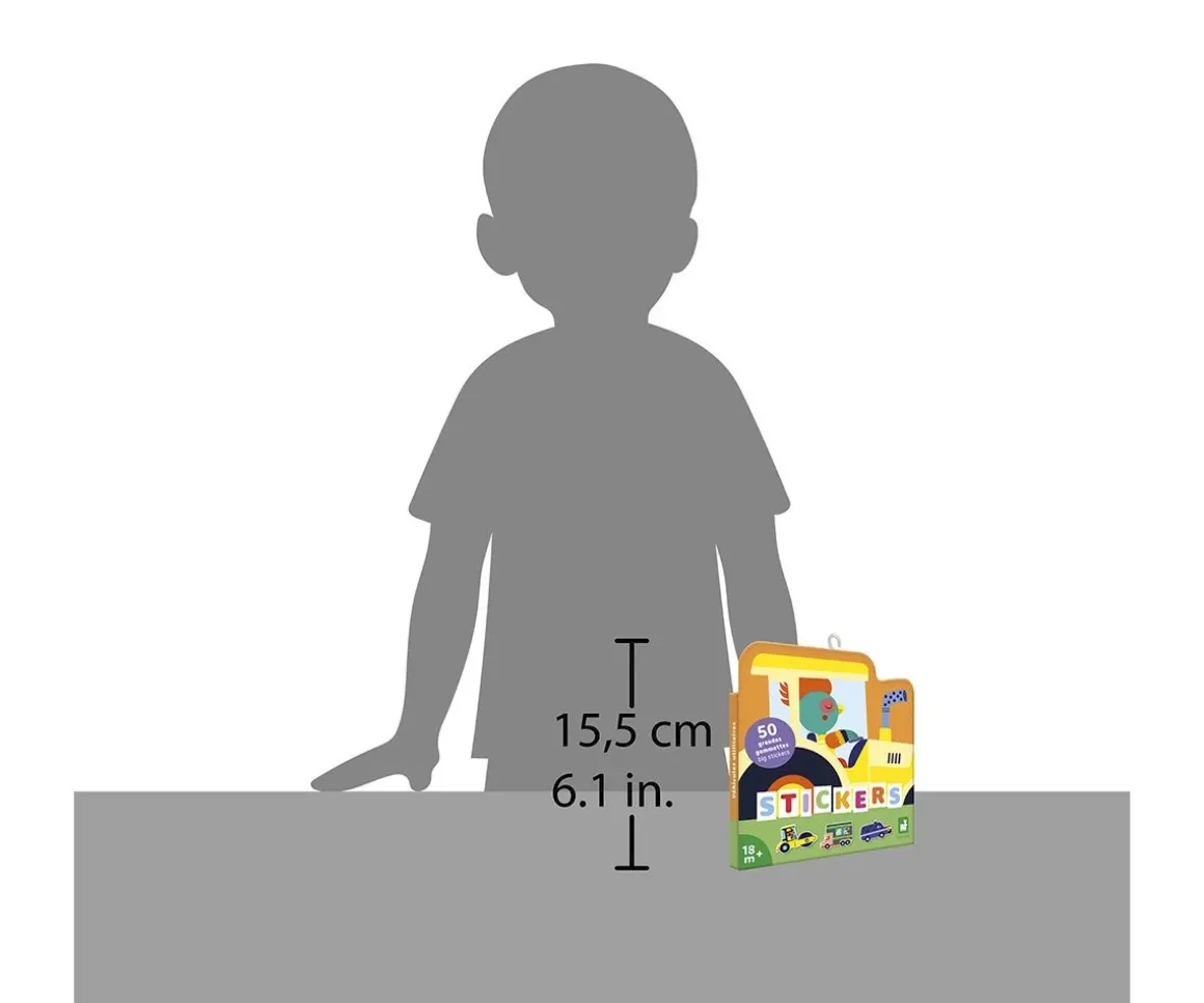 El tamaño de las pegatinas ha sido diseñado para las manos de los peques, que podrán cogerlas y pegarlas con facilidad. Explora todo tipo de vehículos y maquinaria de construcción con Janod.