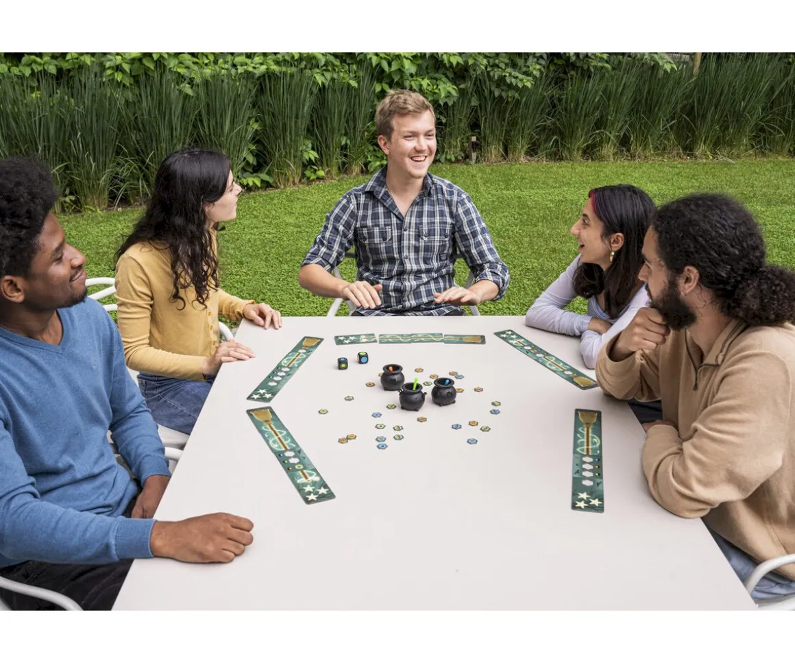 ¡Divertido, mágico y explosivo! Abracada-Broom es un juego de memoria lleno de “giros” para toda la familia. Vuelve a hacer magia con tu escoba preparando las mezclas adecuadas mientras las ollas y las cucharas vuelan por todas partes. ¡ATENCIÓN! ¡Demasiados ingredientes harán que tu caldero explote!