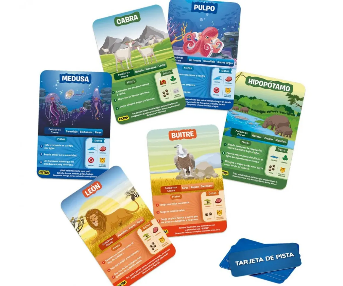 Prepárate para el juego de preguntas más emocionante. Hasta 10 preguntas para adividar el animal de la tarjeta de juego.