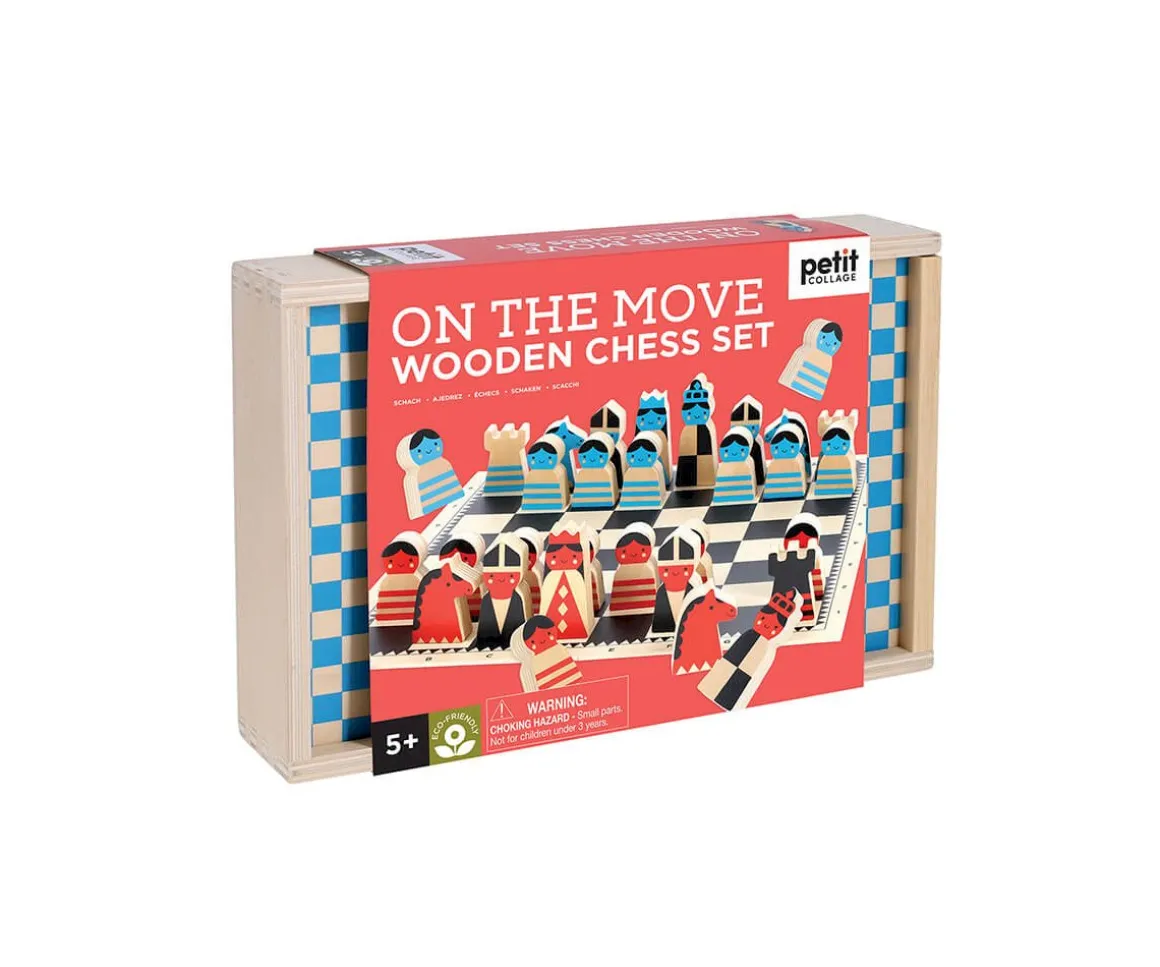 Mantén la cabeza fría con este divertido juego de ajedrez de madera de Petit Collage. Perfecto para niños y principiantes, incluye 32 piezas, un tablero y sencillas instrucciones en seis idiomas. Viene en una caja de madera portátil para jugar y aprender en cualquier lugar.