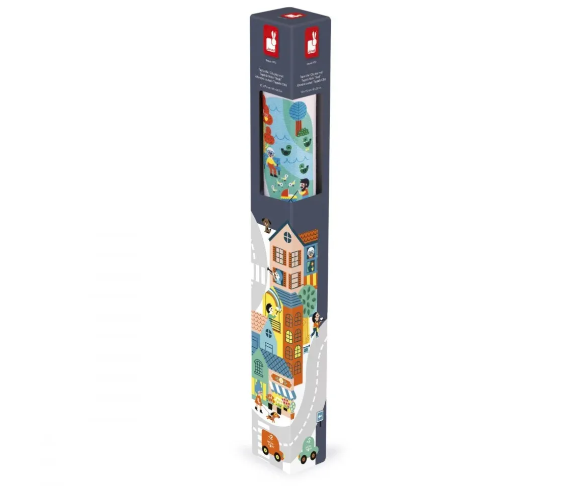 Las alfombras de juegos con circuito de la colección Cross Roads de Janod están repletas de carreteras, elementos divertidos como personajes, casas y mucho más.