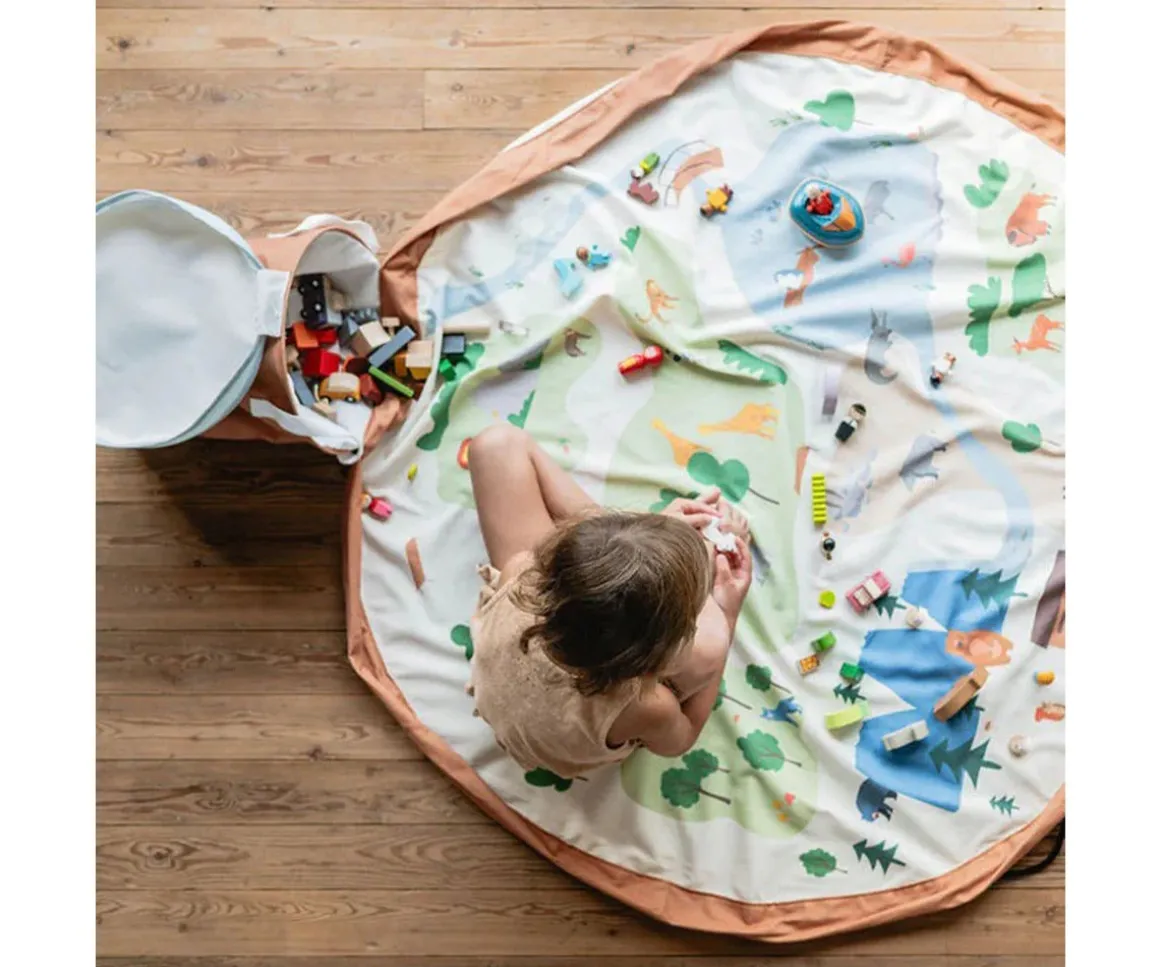 Solo tienes que desplegar la alfombra para que tu peque se sumerja en un mundo mágico. ¿Hora de recoger? Tira de los cordones, ¡y todo se convierte en una práctica cesta lista para guardar!
