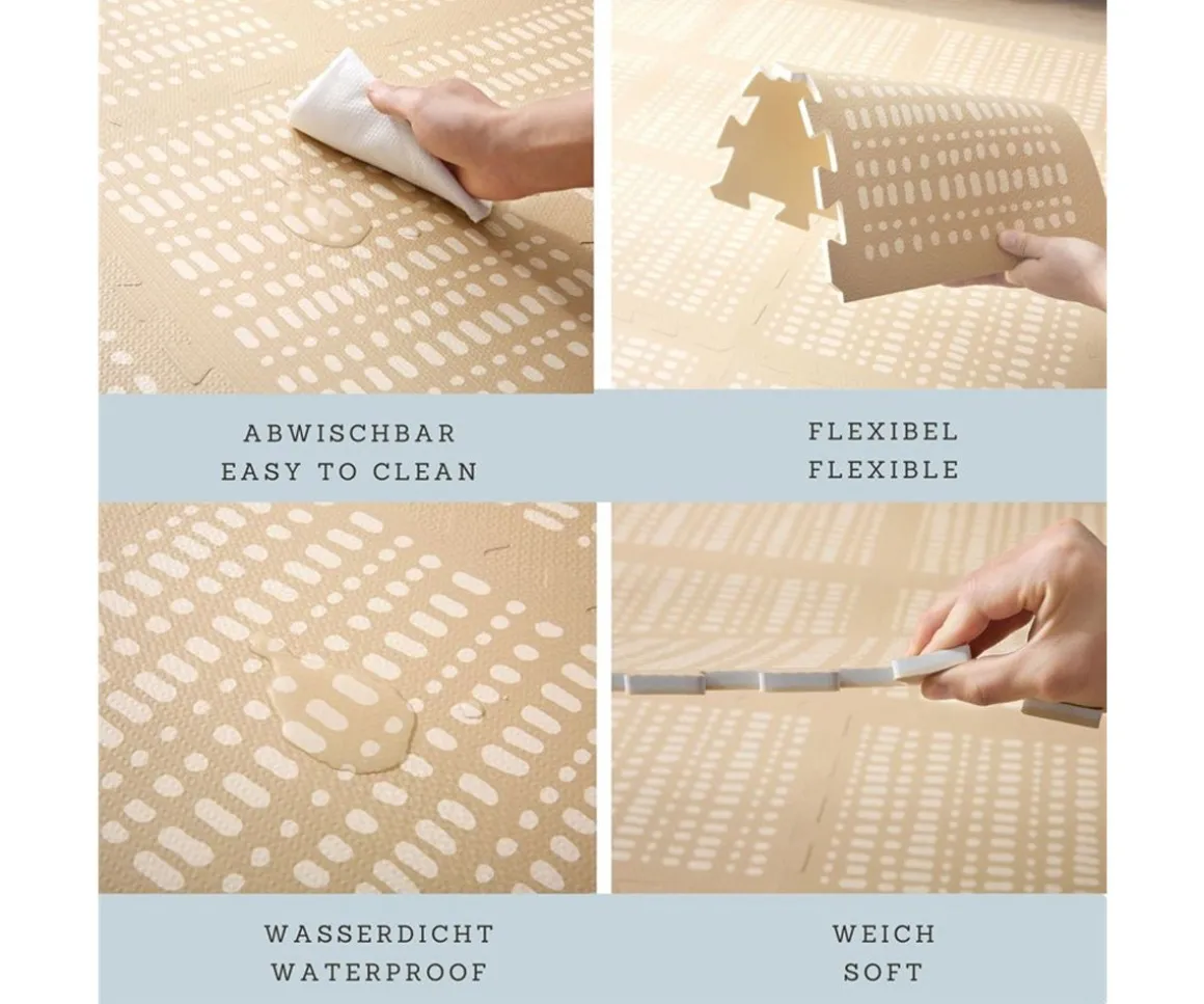 Monta esta alfombra de juegos rápidamente y crea un lugar perfecto donde los bebés puedan gatear, los peques jugar e incluso hacer yoga o usar al aire libre.