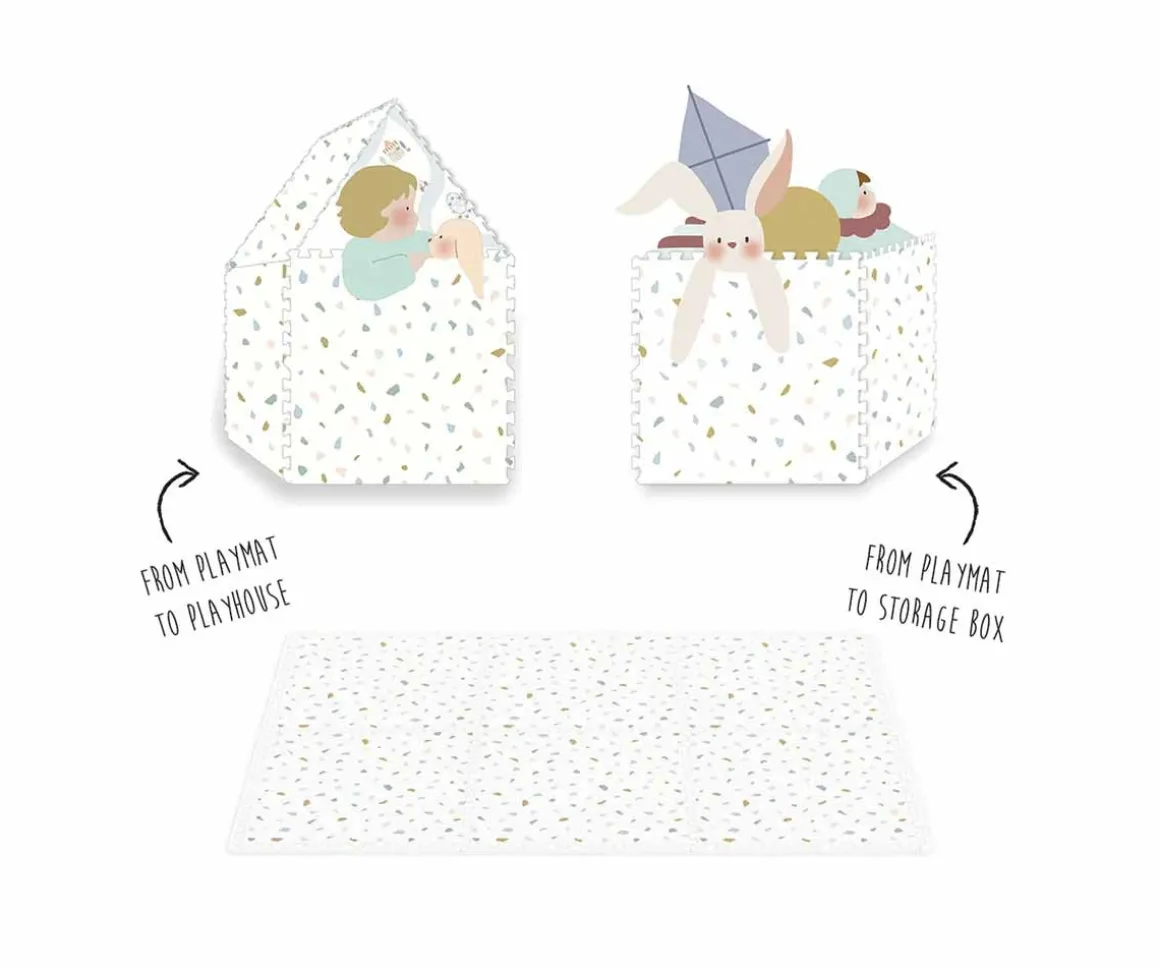 Esta versátil alfombra es un 2 en 1: puede ser utilizado como una alfombra de juegos para tus peques y, una vez terminado el juego, transformarse en una caja de almacenamiento para guardar sus juguetes.