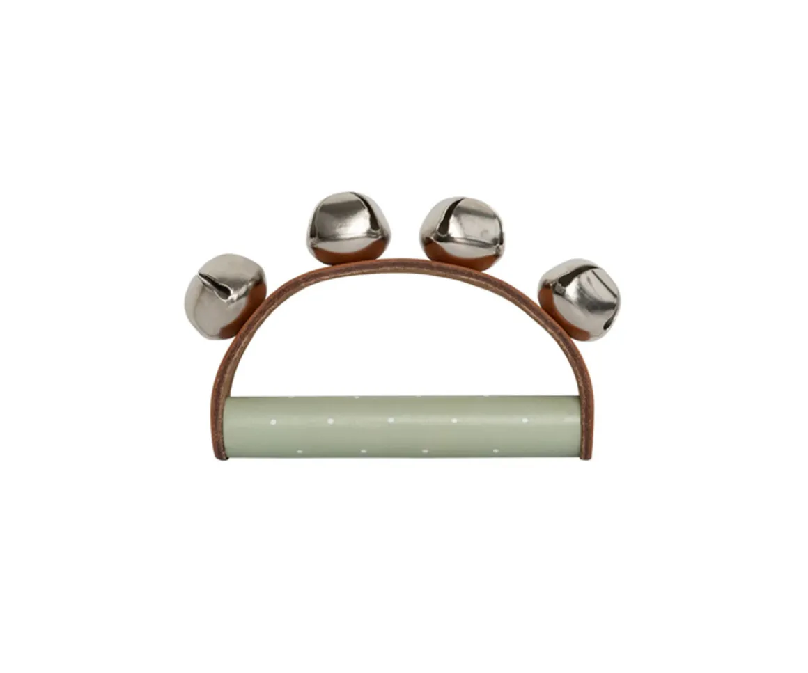 Cascabeles para manos pequeñitas, fácil de sujetar con su asa de cuero que podrán manejar con soltura para introducirse por primera vez en el mundo musical.