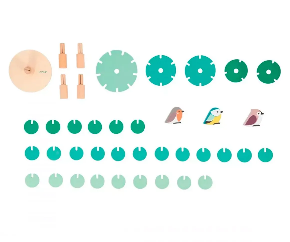 Con este juego de 37 piezas los peques podrán construir un precioso arból de 30cm. Se empieza por poner los distintos niveles del árbol en el tronco central y luego se van encajando las hojas redonditas para ver cómo se va formando el árbol como en primavera. ¿Pero qué sería de este árbol tan genial sin sus habitantes? ¡Como en la naturaleza todos conviven, pueden refugiarse en él 3 preciosos pájaros! ¡Un gorrión, un petirrojo y un herrerillo podrán posarse en lo alto de su copa! Diseñado en colaboración con WWF®. A través de esta colección Janod quiere inspirar y concienciar a las generaciones más jóvenes a favor de la fauna y la naturaleza.