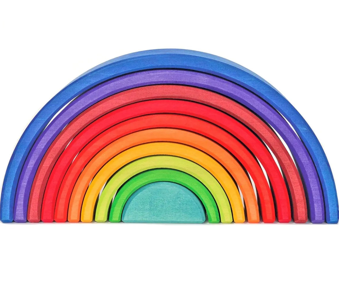 Arcoíris fabricado en madera, muy versátil e ideal para estimular la imaginación de los niños pequeños.