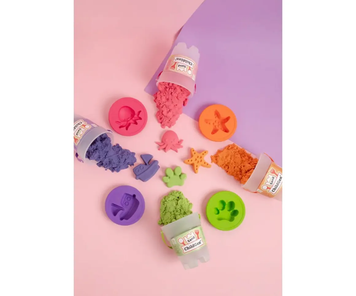 Estimula la motricidad, los sentidos y la imaginación con la textura suave y propiedades antibacterianas de la arena kinética ChildGen.