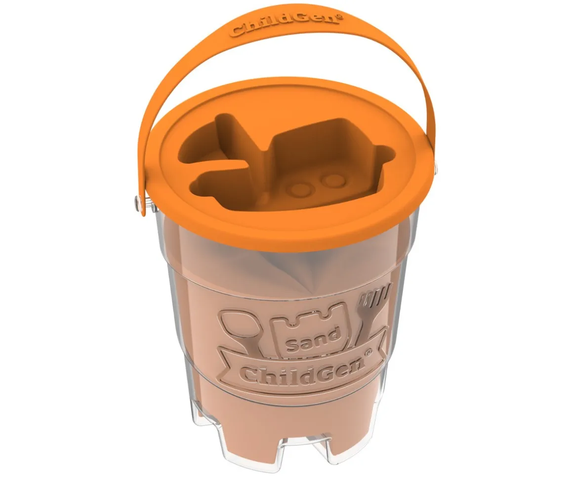 - El envase funciona como un cubo de arena que tiene en su tapa un original molde