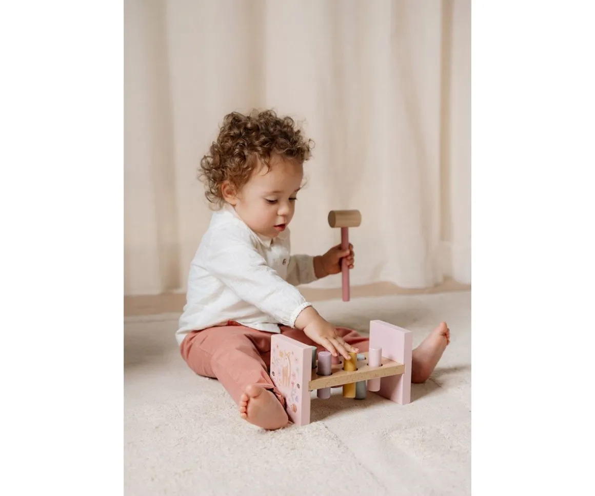 Usa el mazo para golpear las 6 clavijas de colores en el banco de madera y explora la magia de la colección Fairy Garden de Little Dutch. Una vez terminado de golpear todos los colores, ¡gira el banco y comienza de nuevo!