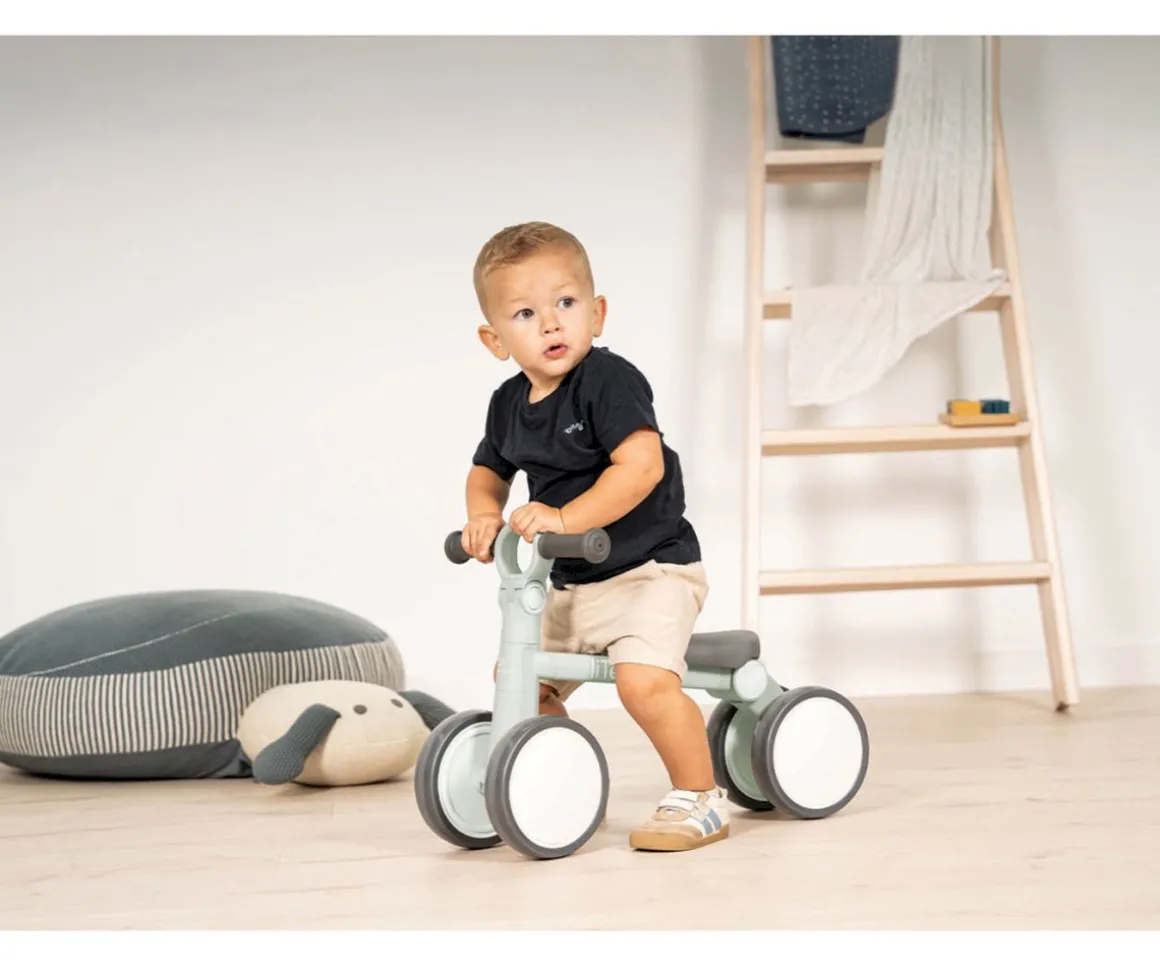 Su estructura es pequeña y ligera, equipada con dos ruedas traseras para proporcionar una mayor estabilidad. La altura del manillar es regulable en dos posiciones con empuñaduras de goma antideslizantes aseguran un uso cómodo y seguro. El sillín blando y con bordes redondeados añaden un toque extra de confort para que cada paseo sea una experiencia placentera.