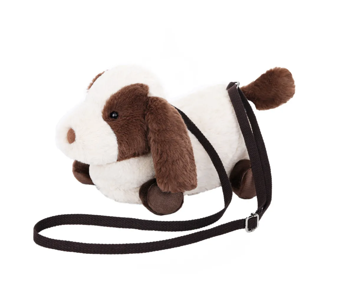 Un suave perrito de peluche que además, servirá para llevar tus pertenencias con estilo a cualquier lugar.