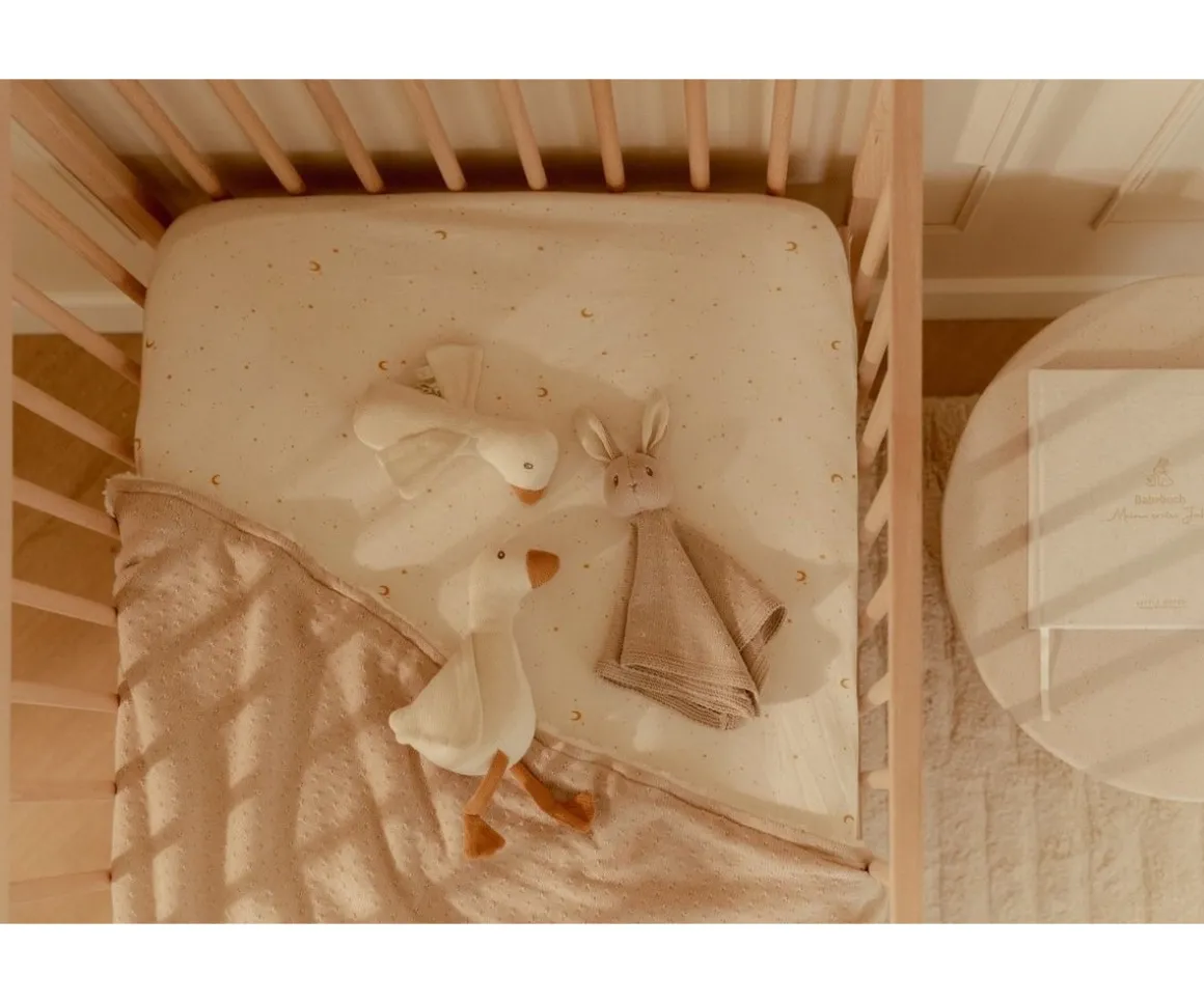 - Incluye: peluche de oca, doudou de conejito y sonajero oca