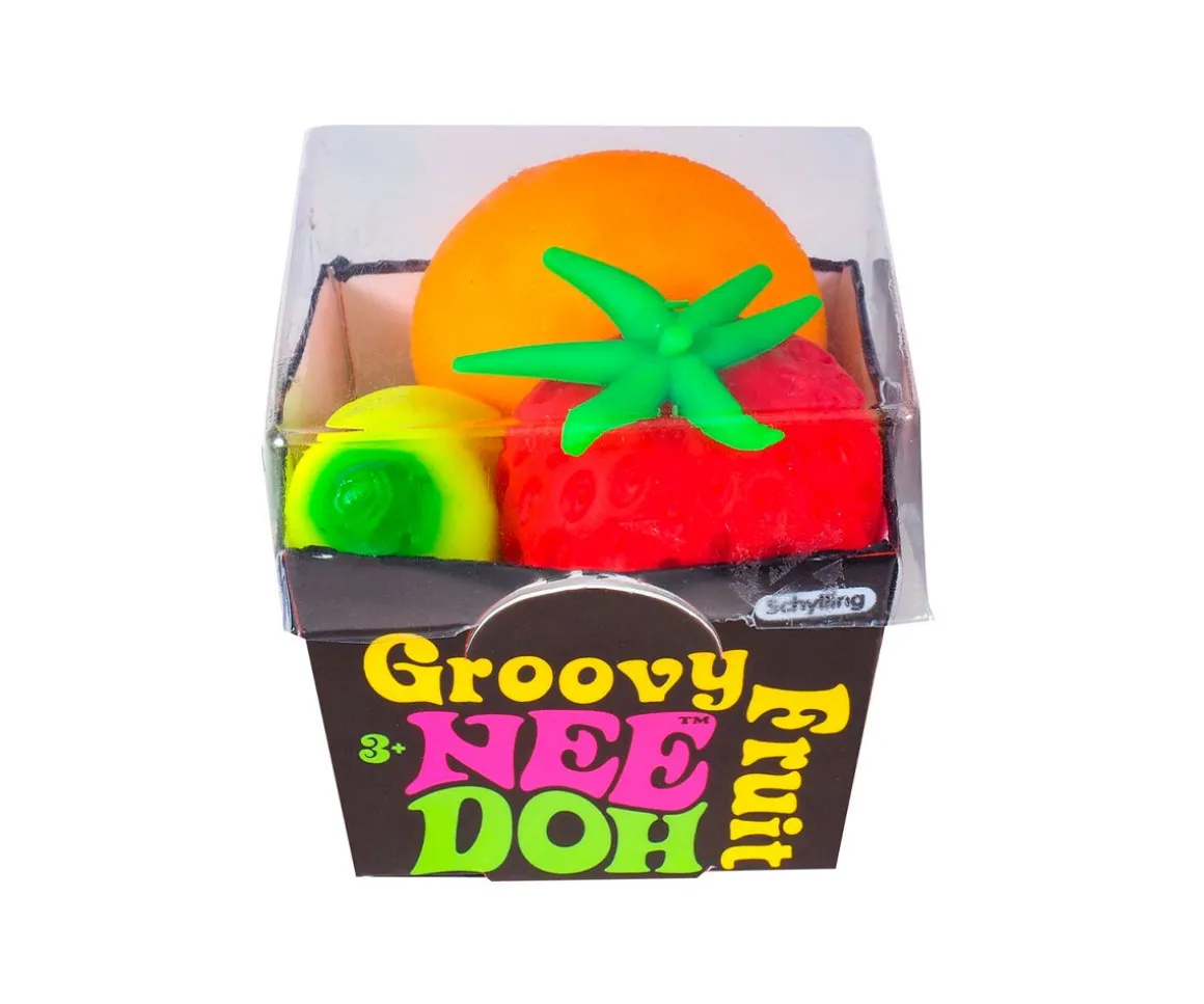 Conjunto de 3 frutas de material blando estilo squeeze que los peques podrán apretar, aplastar, estirar y siempre volverá a su forma original.
