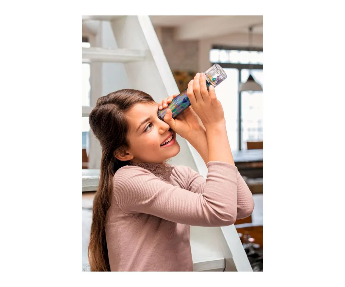 Este Kit incluye todo lo que necesitas para construir tu propio caleidoscopio, incluyendo papel adhesivo de colores para personalizar el tubo de cartón.