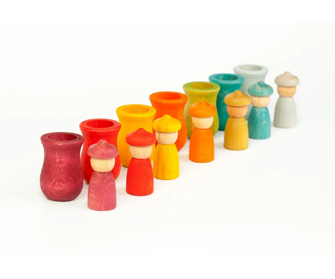 - 7 Nins®-bellota en 7 colores que se asocian con cada día de la semana de acuerdo con la pedagogía Waldorf