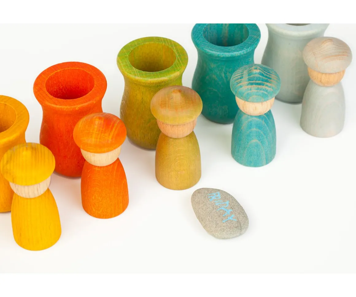 - 7 Nins®-bellota en 7 colores que se asocian con cada día de la semana de acuerdo con la pedagogía Waldorf