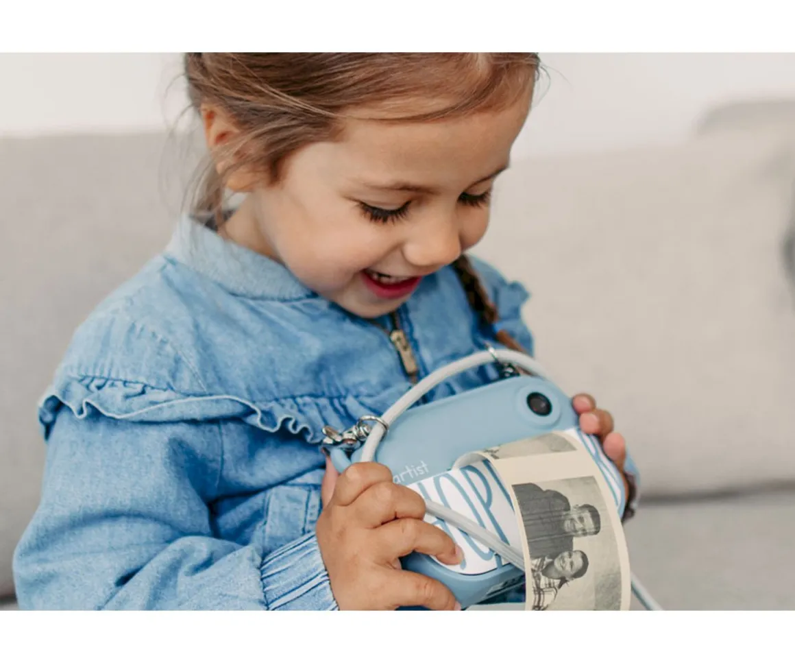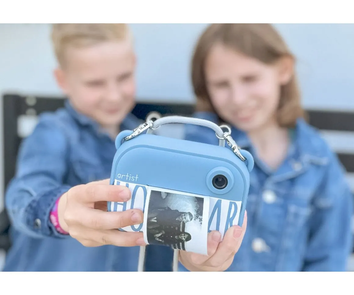 - Incluye: cámara selfie, tarjeta de memoria de 16GB, 3 rollos de impresión, 1 cable USB-C y correa para fácil transporte