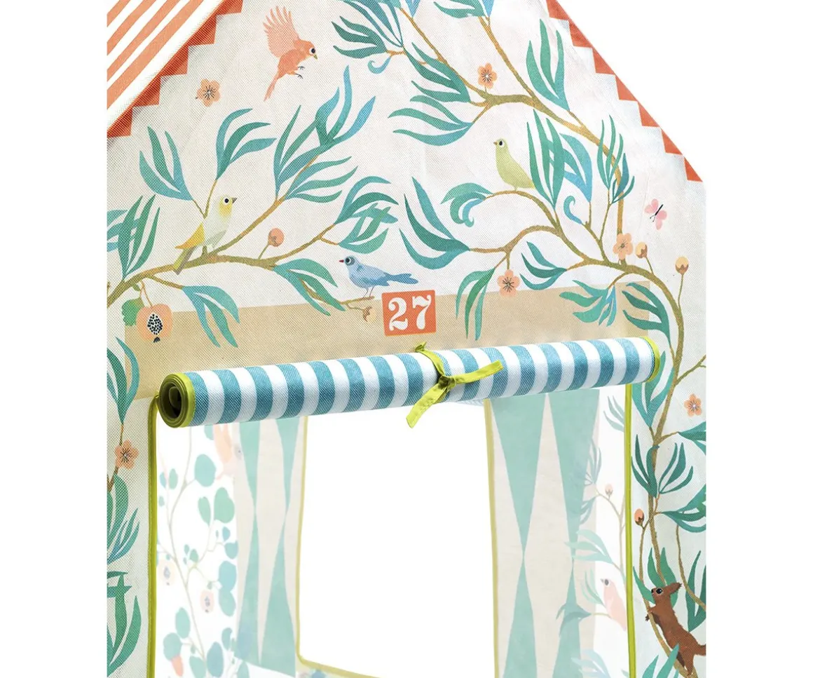 Esta bonita cabaña de Djeco cuenta con tres ventanas y una puerta, creando un espacio mágico para el juego. Su estructura es fácil de montar y plegar, perfecta para que los peques tengan un rincón especial donde crear historias y recuerdos.