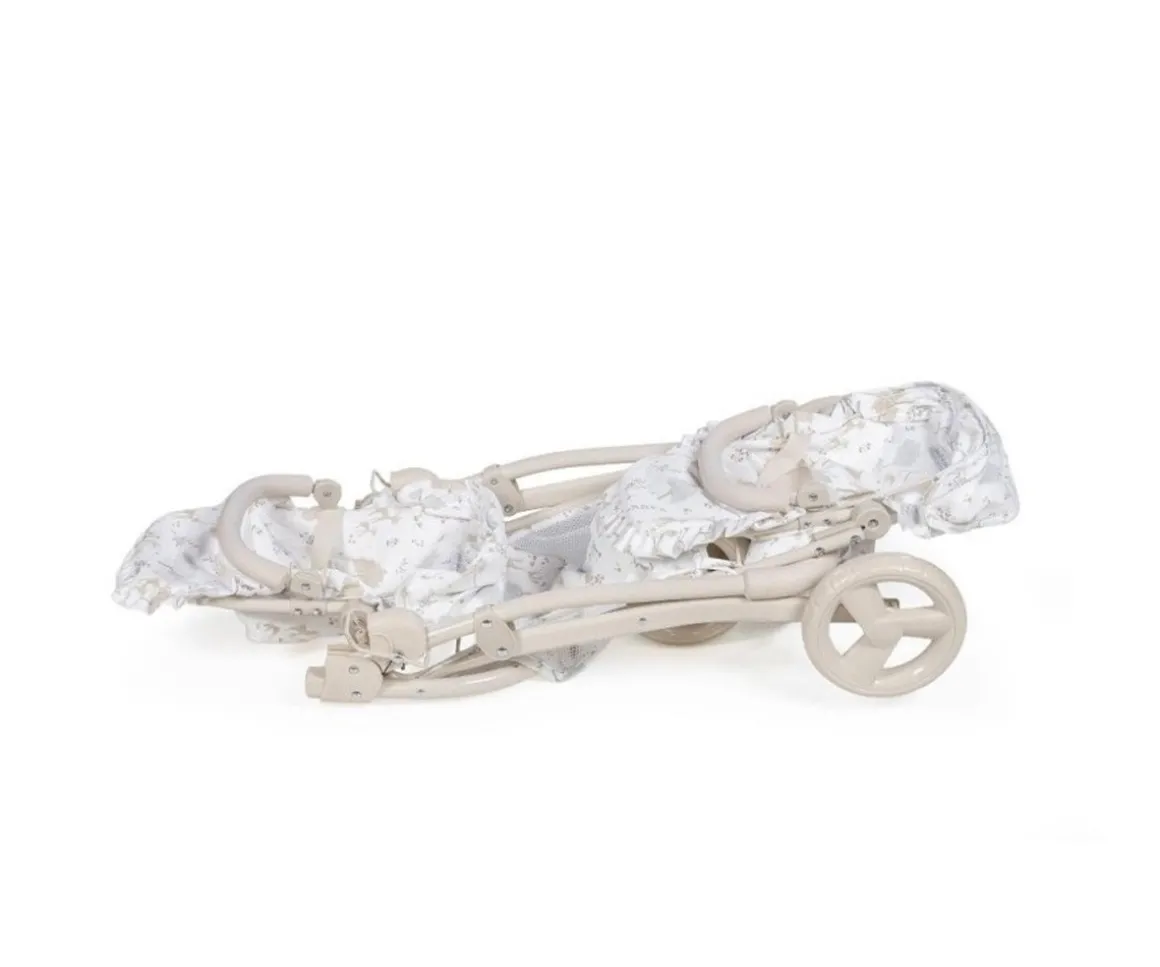 Pasea muñecas en el cochecito gemelar Nara de Pasito a Pasito, perfecto para muñecas de 30 a 42 cm, este cochecito con dos asientos en tándem te permitirá llevar a varias de muñecas de paseo a la vez. Es plegable, ocupa poco espacio y tiene un fácil montaje.