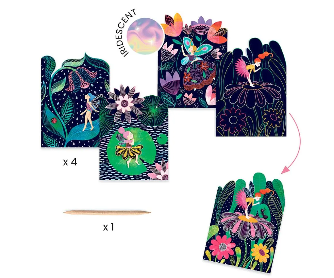 - Incluye hadas y animales de origami, tarjeta rasca con raspador ,collages de purpurina,pintar con pincel y 8 colores,imágenes en 3D,dibujo y sellos