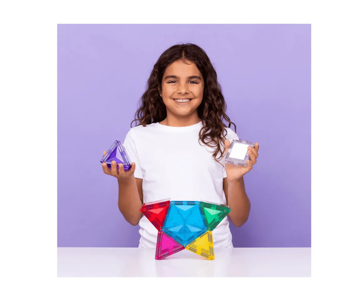Un set de Connetix diseñado para elevar el juego magnético a un nuevo nivel. Este pack incluye cuadrados, triángulos equiláteros, pentágonos y una pieza luminosa recargable que permite transformar cualquier construcción en un espectáculo brillante lleno de magia.
