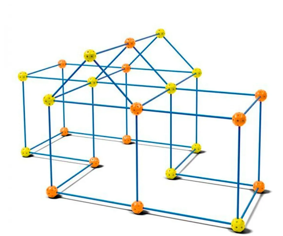 Los peques sacarán todo su ingenio para construir una cabaña única y resistente. La estructura está formada por varillas y piezas de conexión entre varillas resistentes.