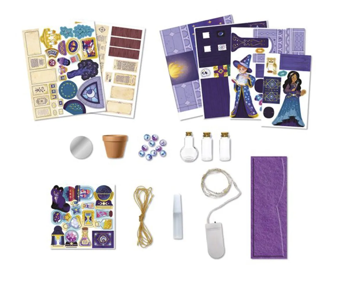 Este kit creativo te permite crear una auténtica escuela de magos en miniatura directamente en la caja. Monta, pega y decora este pequeño universo con una guirnalda luminosa.