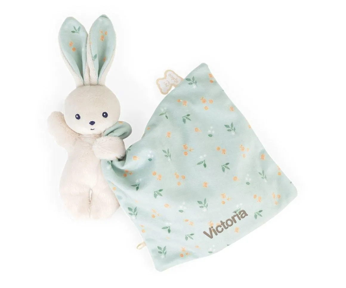 Este precioso conejito envuelto en una mantita cuadrada será el mejor compañero de los más peques