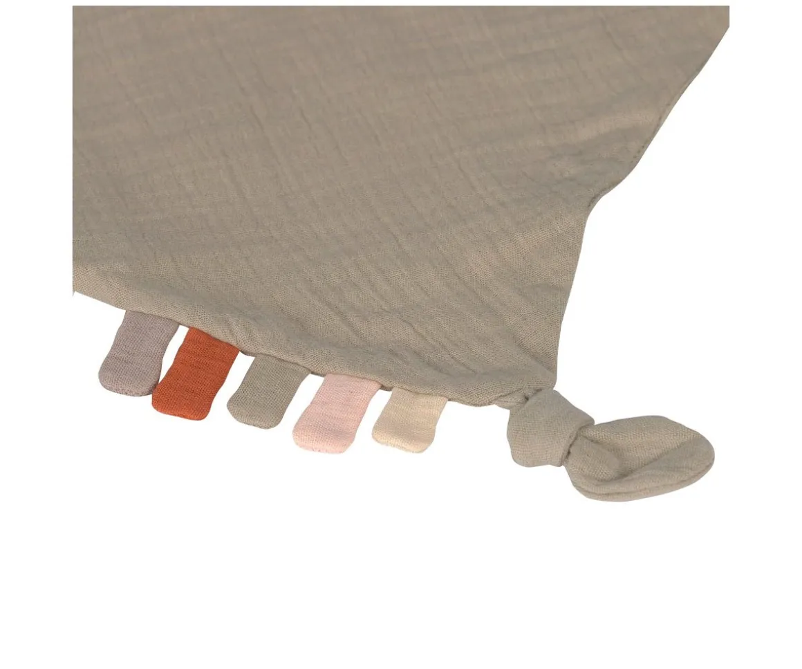 Bonito doudou con forma de león hecho de muselina con certificación GOTS,se convertirá en el compañero perfecto de tu bebé.
