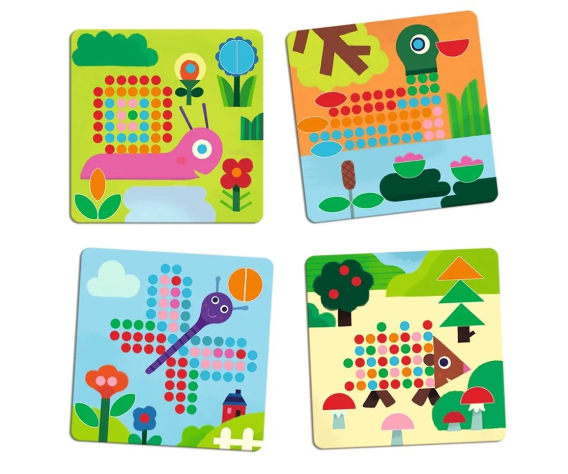 Un juego de mosaico educativo que permite a los niños crear cuadros llenos de color completando 8 dibujos de animales con clavijas de colores. Ideal para desarrollar la motricidad fina, la coordinación mano-ojo y la creatividad.
