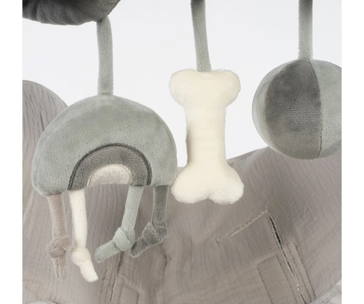 La espiral de actividades con una adorable cabeza de perrito de la colección Sintra de Walking Mum, es ideal para estimular y entretener a tu bebé. Confeccionado en materiales suaves y seguros, se adapta fácilmente a cochecitos o sillas de auto. Incluye colgantes con texturas, formas y sonidos que fomentan el desarrollo sensorial.