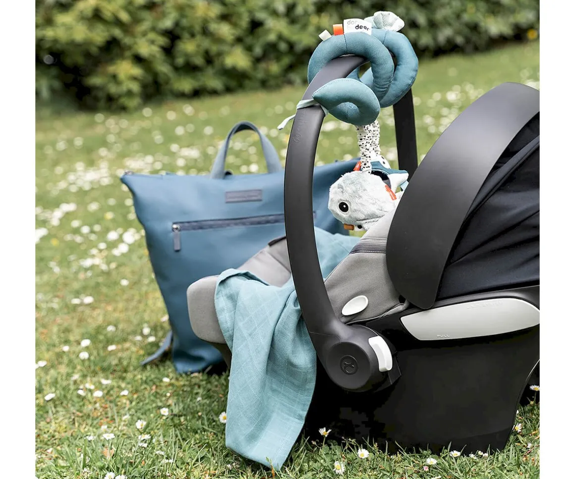 Espiral flexible que puedes sujetar a la cuna, asiento del coche, cochecito o en el lado del parque de juegos. Podrá interactuar y descubrir los sonidos con la bonita medusa Jelly, la dulce ballena Wally y con el divertido espejito en forma de estrella.