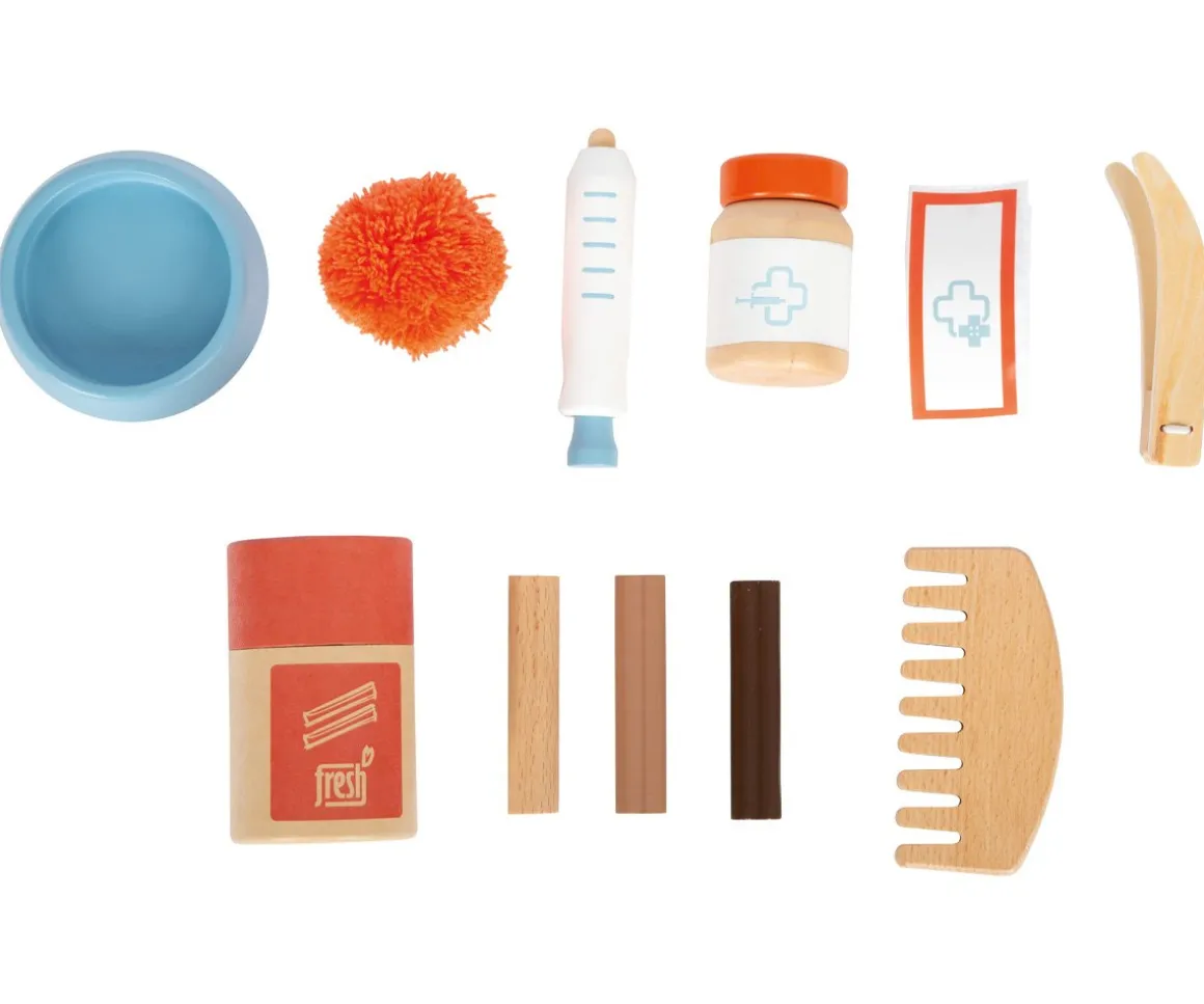 El set de Smallfoot incluye una bolsa de transporte para llevar a todas partes a este precioso amiguito peludo y todos los accesorios necesarios para su cuidado y alimentación.