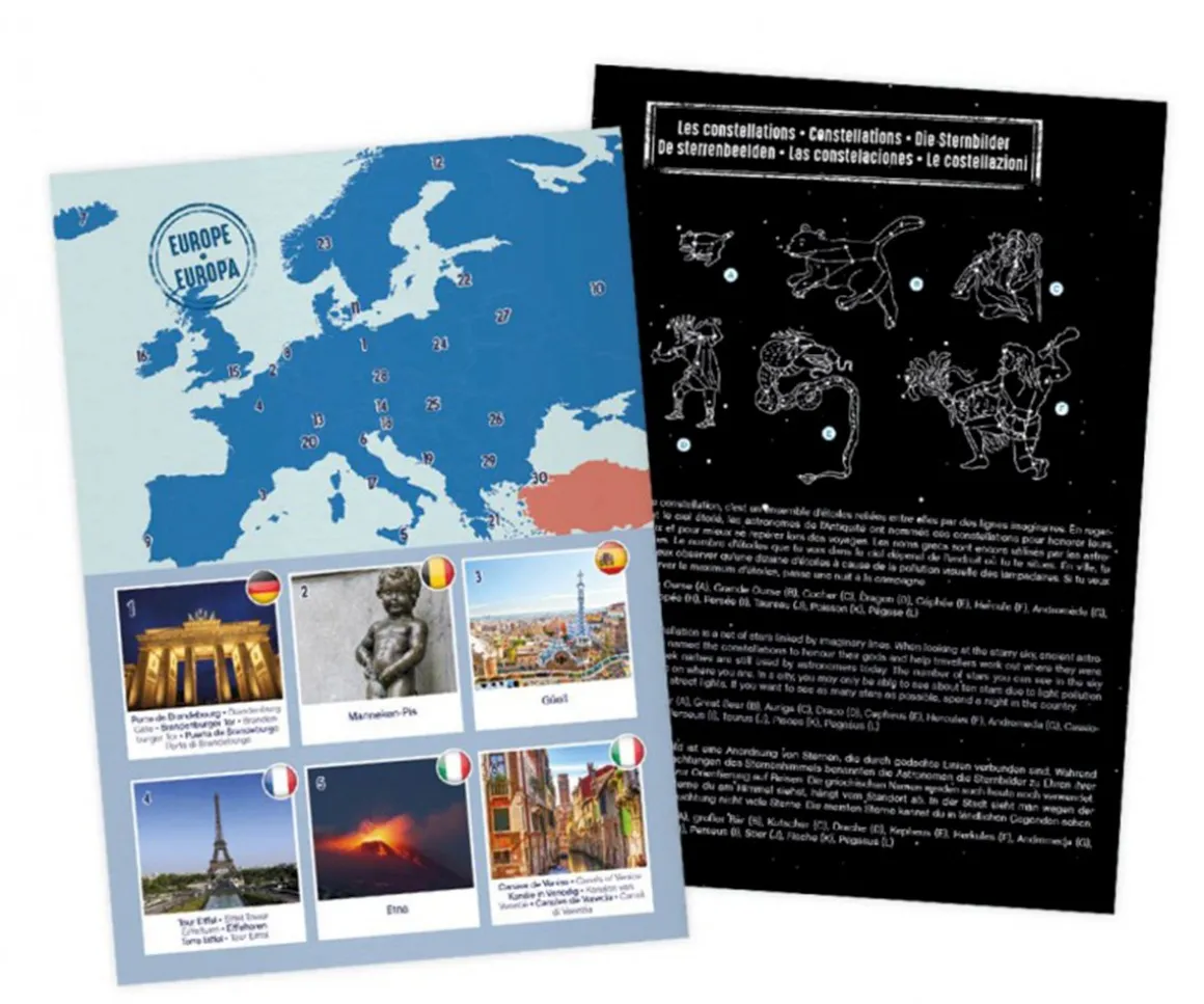 Montado sobre un sólido soporte de metal, este globo te permite explorar las fronteras políticas, mares, montañas y ciudades durante el día. Por la noche, ilumina tu habitación y contempla las 88 constelaciones, ¡aprendiendo sus nombres mientras te sumerges en el cosmos!