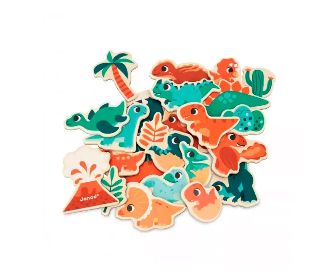 Los peques podrán viajar en el tiempo y recrear un montón de escenas con este bonito lote de imanes de dinosaurios.