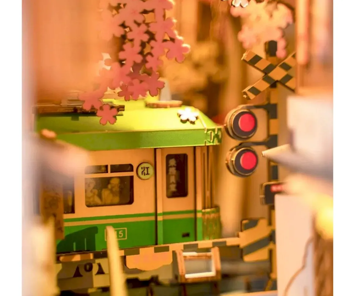 Esta divertida maqueta precortada Sakura Densya de la colección Book Nook de Rolife, es una decoración de estantería DIY en forma de una casa en miniatura. Después de terminar de construir la maqueta, podrás ver una escena de las calles de Tokio en primavera. ¡Incluye luces Led que hará que esta maqueta en miniatura sea sorprendente!