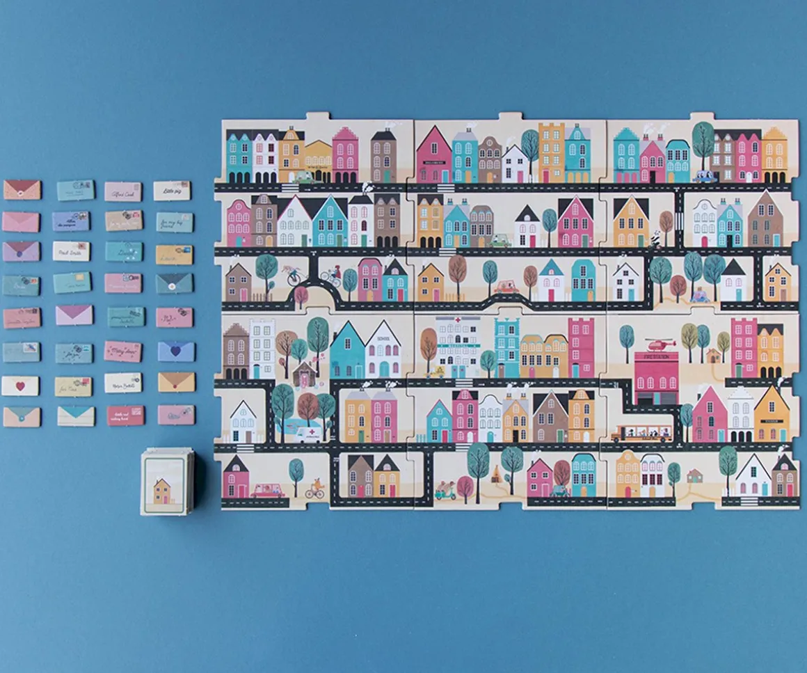 - Incluye: 60 tarjetas con imágenes para buscar, 6 piezas de puzzle, 32 cartas de cartero