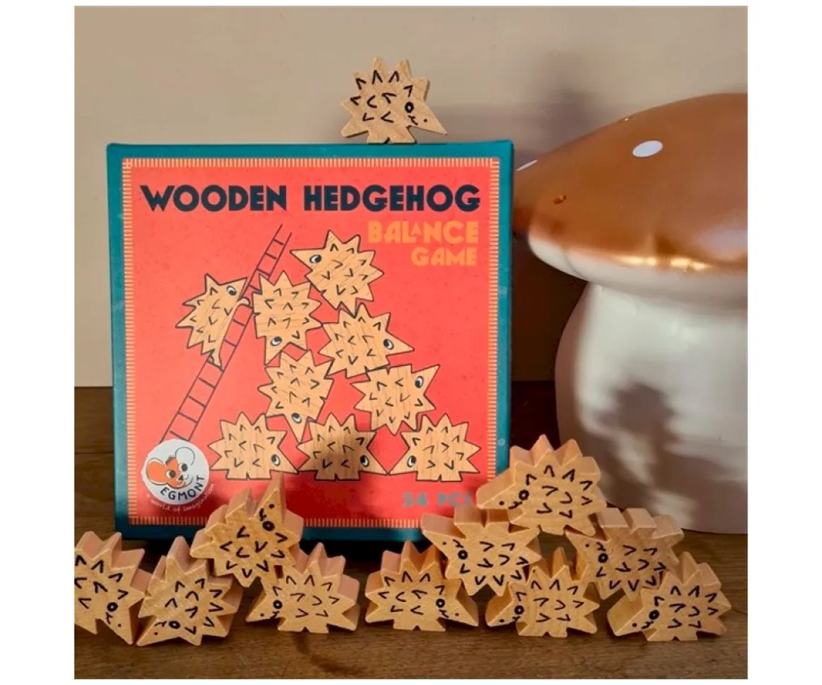 24 erizos de madera para apilar uno encima del otro. Puedes jugar individual o con más jugadores para hacer un juego alegre y con destreza.
