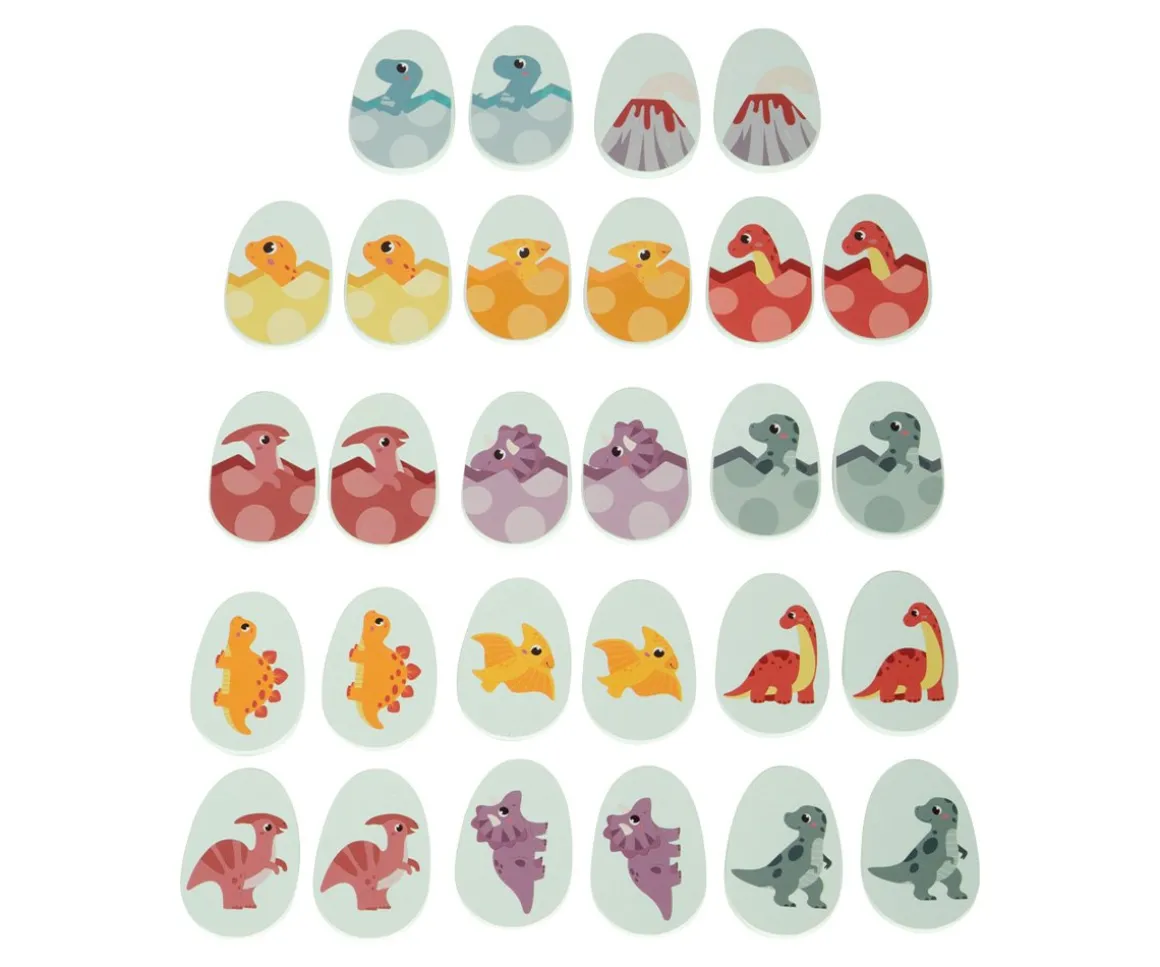 Un divertido juego de madera para que los amantes de los dinosaurios trabajen la concentración y la memoria a la vez que descubren y conocen a estos gigantes prehistóricos.