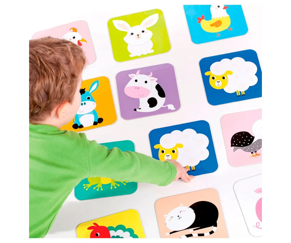 Además del juego de memoria, los peques pueden jugar a reconocer los nombres de los animalitos, sus sonidos y otras características de los animales.