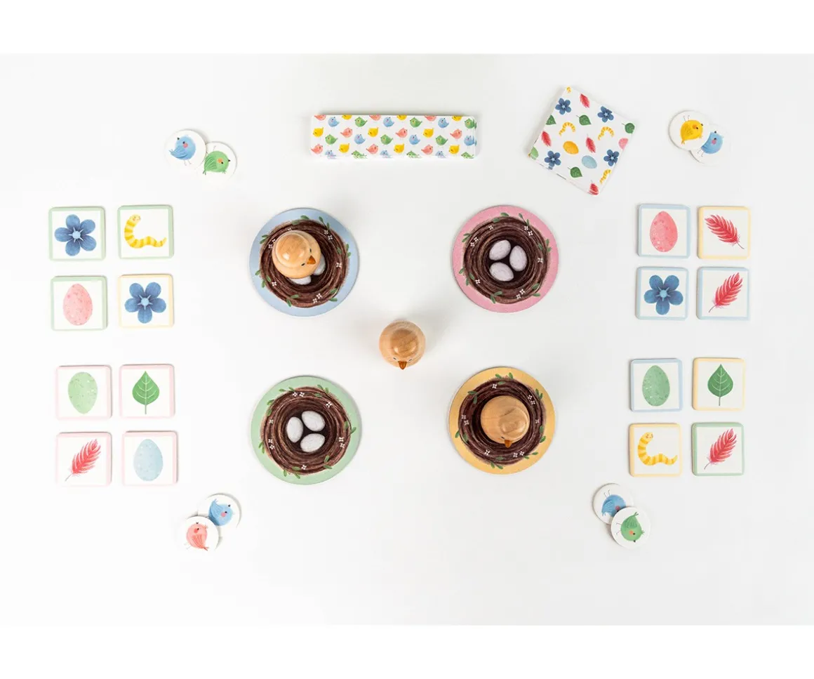 En Bidibirdy, los peques se sumergen en un encantador juego de observación y asociación donde deberán recrear nidos siguiendo las cartas desafío,¡y ser los más rápidos en atrapar un pajarito de madera para ganar un oisillón!