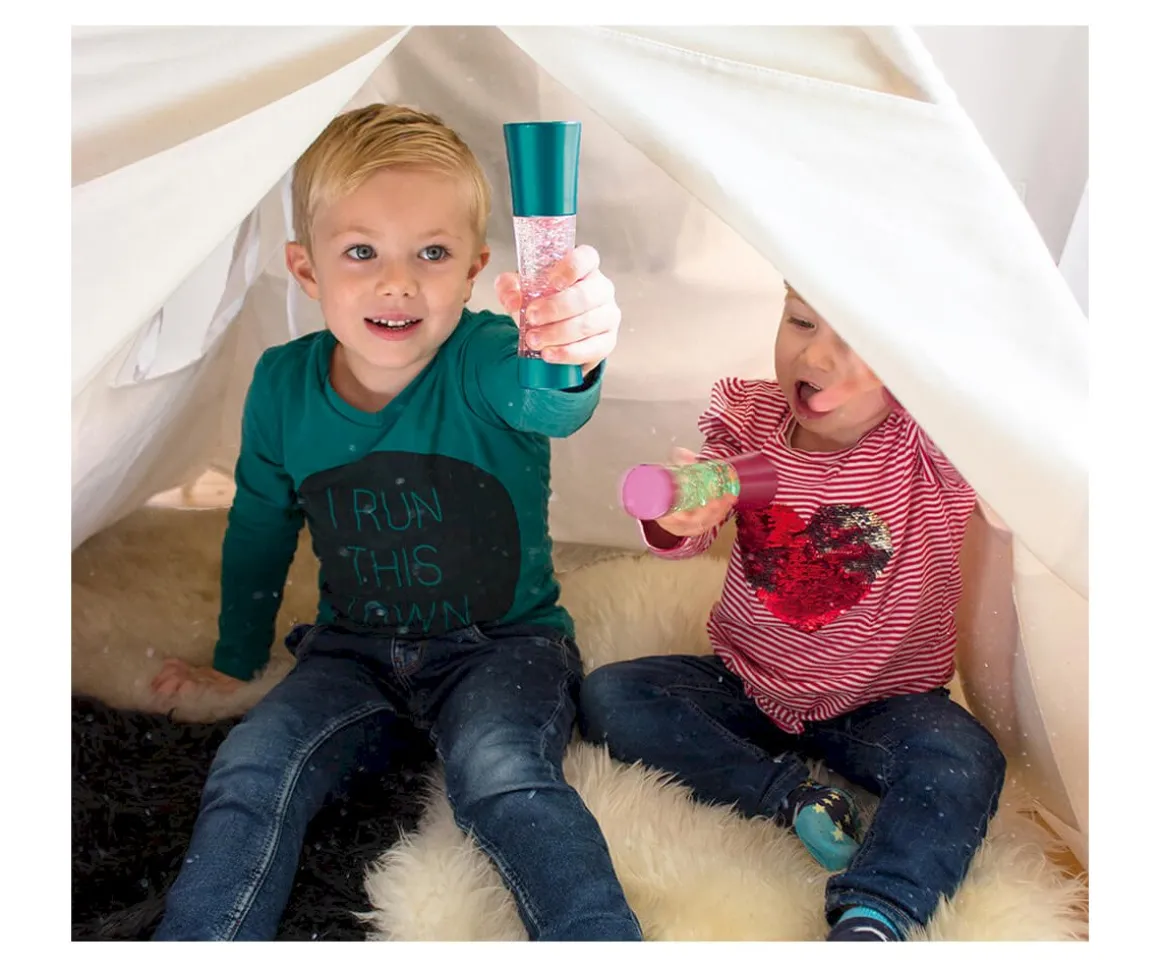 Las lámparas con luz y púrpurina de Moses estimularán los sentidos de los más peques. Les encantará agitarlas y ver como se ilumina y mueve la púrpurina a través de ellas.