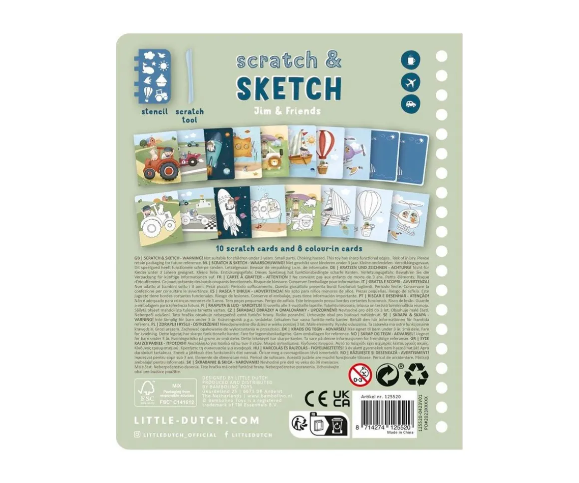 Este libro con anillas contiene 10 tarjetas para rascar, 8 páginas para colorear y una plantilla plastificada. Los peques deberán usar el lápiz que incluye para rascar las láminas.