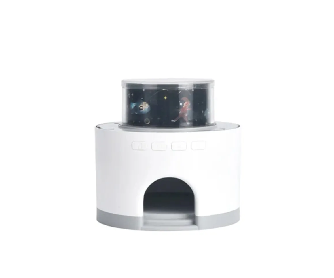 Preciosa lámpara proyector de luz GioStar en forma de casita que aportará una sensación cálida y relajante tanto a peques como a mayores. Con planetas giratorios, estrellas centelleantes y un ambiente marino misterioso, brinda seguridad y tranquilidad en las horas nocturnas. La suave música calma y ayuda a los pequeños a conciliar el sueño.