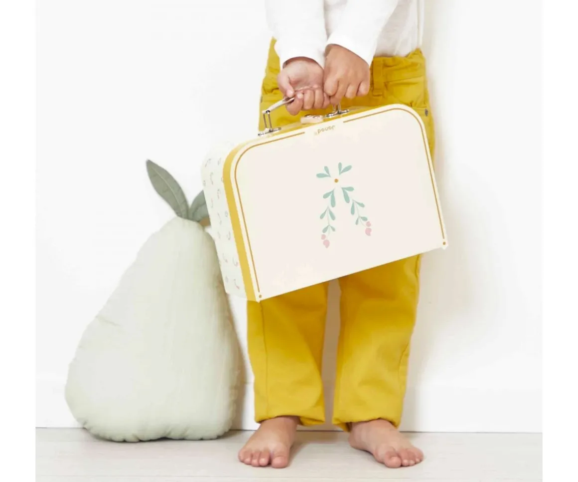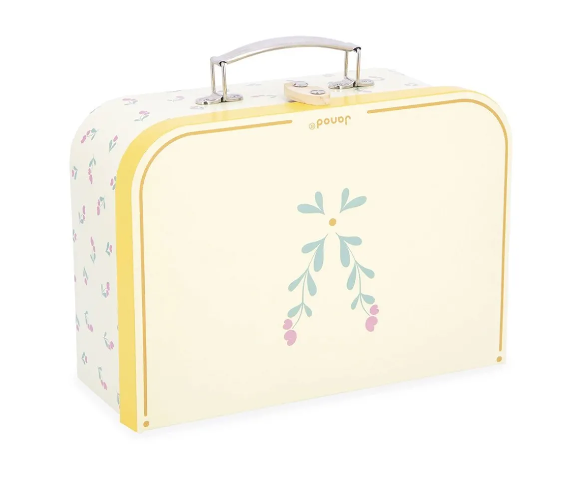 Este adorable maletín incluye todos los utensilios de madera necesarios para prepara una mesa de comida, merienda o cena para 4 personas. Ideal para llevar a cualquier parte y crear todo tipo de historias y juegos.